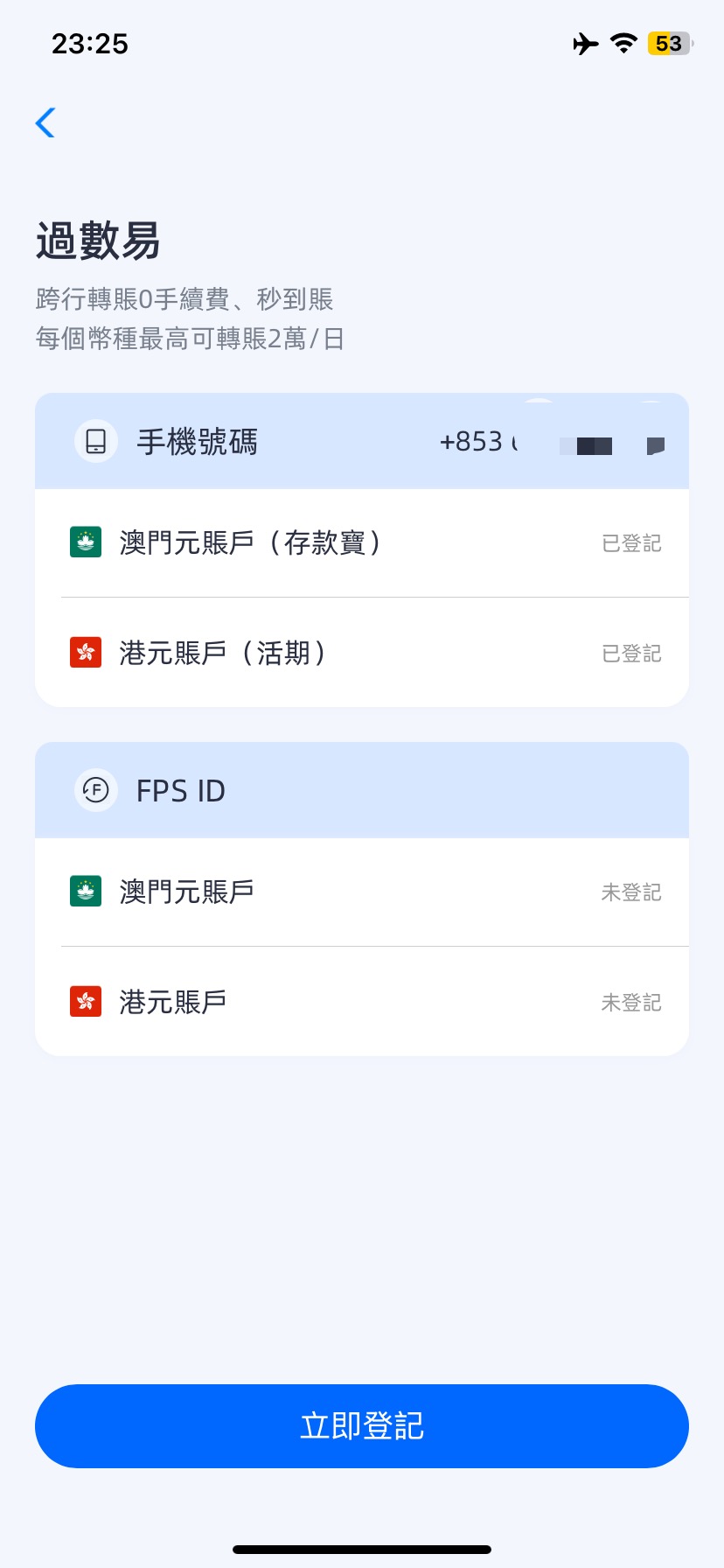 我们使用FPS,只要是澳门的本地银行都可以实现0手续费、秒到账、每天2万限额。
